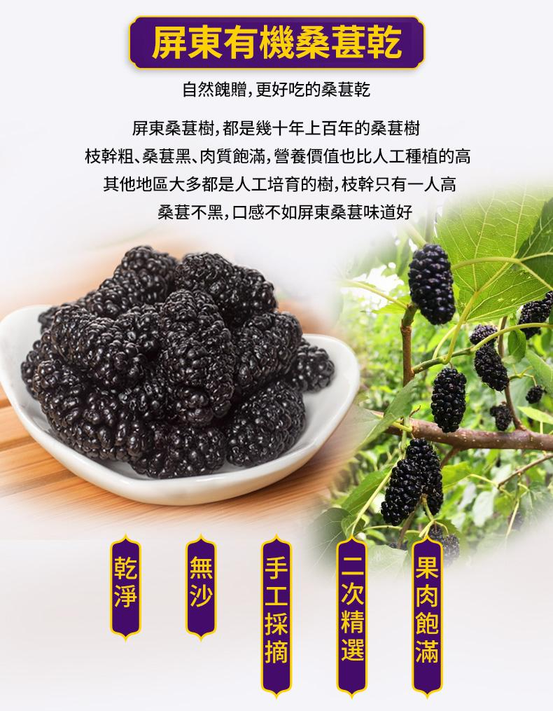 我們的桑椹乾經過層層篩選,全都是採用有機種植