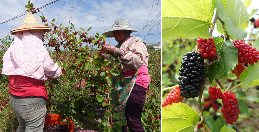 位在屏東的桑葚,每年都會產出甜蜜的黑鑽石桑葚,是陳大哥經過三十年的時間研究,比一般的桑葚果實大上三倍之多。其含有豐富的鐵質、花青素和白藜蘆醇,可說是很有價值的小果物呢!